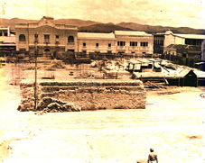 ![]() Avanzando los trabajos del monumental Palacio Nacional. Al fondo el antigüo Edificio de Turismo. Año 1939. Foto: Rafael Morales Sánchez. | ![]() Trabajos de cimentación del Palacio Nacional en el año 1939. Foto: Rafael Morales Sánchez. |