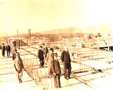 ![]() Construcción del segundo nivel del Palacio Nacional, al fondo la majestuosa Catedral Metropolitana. Año 1941. Foto: Rafael Morales Sánchez. | ![]() Supervisión de Ingenieros en el segundo nivel del Palacio Nacional. Foto: Rafael Morales Sánchez. |