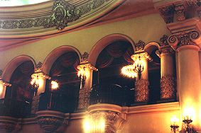 ![]() Lámpara de pie, sobre la base en las gradas del Salón de Orquesta. |