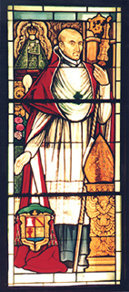 ![]() Vitral del Obispo Francisco Marroquín, en el Salón de Recepciones. | ![]() Vitral de Arquitectura y Astronomía Maya, en el Salón de Recepciones. |
