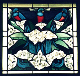 ![]() Vitral de Quetzales y Monja Blanca. Salón de Banquetes. | |