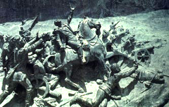 ![]() Famosa gráfica que representa la histórica batalla en los Campos de Chalchuapa, El Salvador donde murió el General Justo Rufino Barrios el 2 de abril de 1885. |