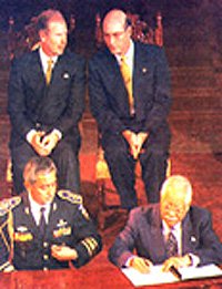 ![]() El momento más esperado por todos, la Firma de la Paz, que terminó con una guerra de más de tres décadas. Diciembre 29, 1996. |
